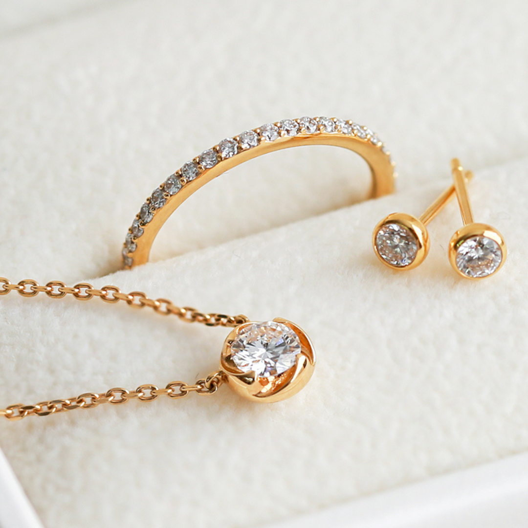 ダイヤモンドは4C(Carat/Color/Clarity/Cut) でグレードが決まります。オレフィーチェのジュエリーは、特別な表記がない限り、“Gカラー/SIクラス/Goodカット以上”のダイヤを使用しています。
