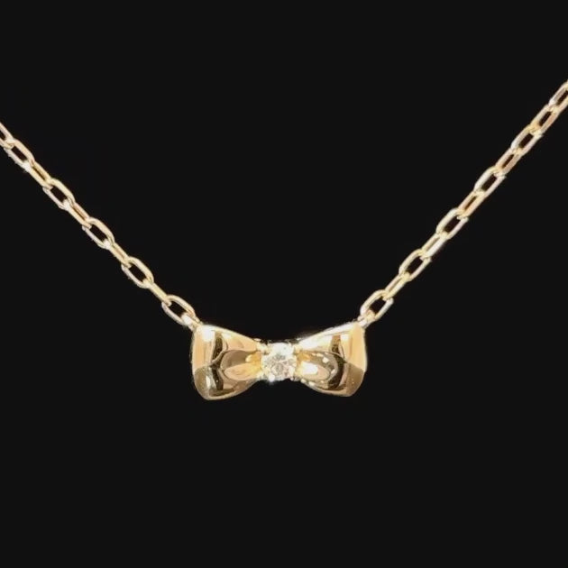 ファーストジュエリーにも重ね着けに最適なボリューム感のリボンデザインが さりげなく胸元に華を添えてくれます