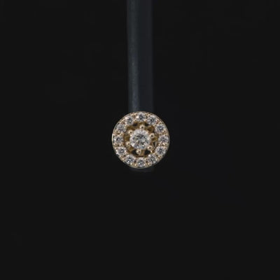 中心のピアスを一段持ち上げる形状にこだわり、光が差し込むようなイメージで、まるで本当の取り巻きデザインのように見える仕様です。