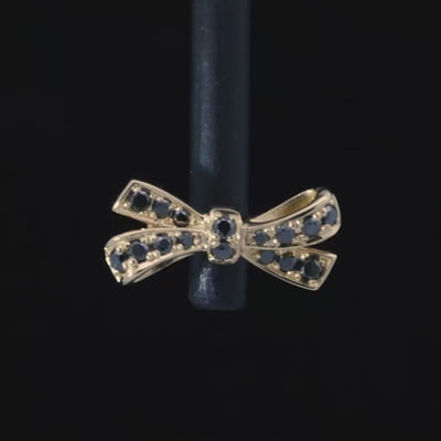「ブラックダイヤ リベル」ピアスブラックダイヤモンドをあしらったリボンモチーフが 闇夜にひそやかな光を撒き