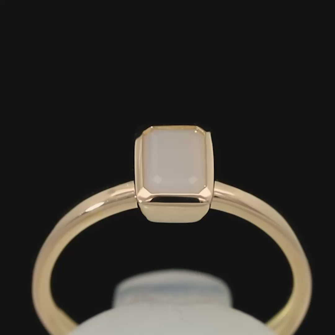 ほのかに透け感を感じさせつつも、深みのある存在感を演出。「ブルームーンセーラ」リングとはまた違う趣があり、落ち着きと清らかさを添えます。