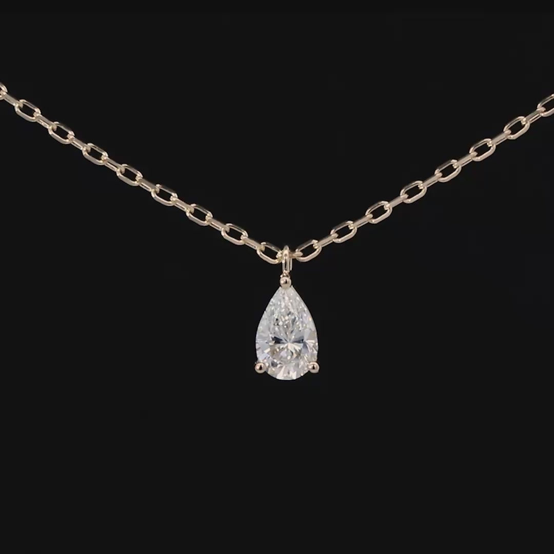 かじくら:胸もとでやさしく光を受けるペアシェイプカットのネックレス。